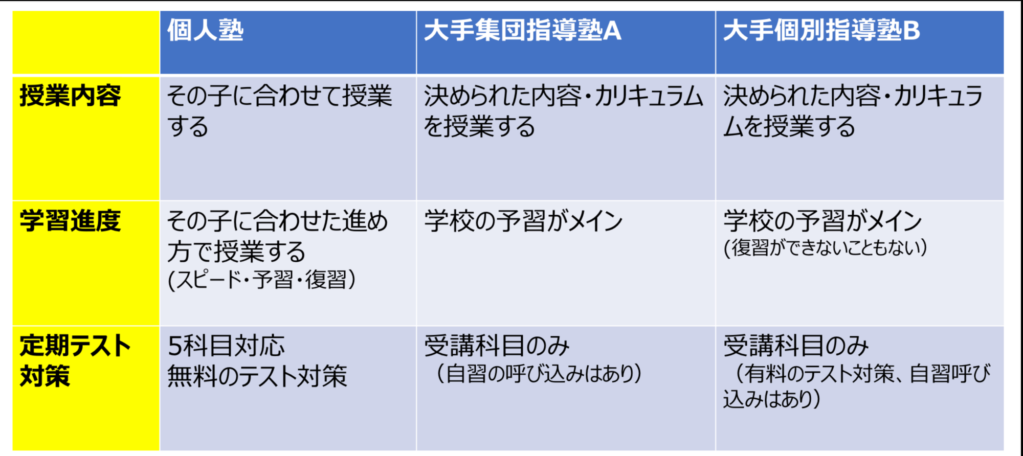 当塾のような「個人塾」は以下の特徴があります。